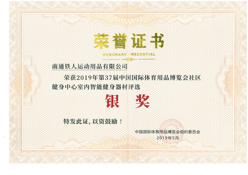 | 2019 | 2019體博會(huì)室內(nèi)智能健身器材銀獎(jiǎng) | 中國(guó)國(guó)際體育用品博覽會(huì)組委會(huì) |