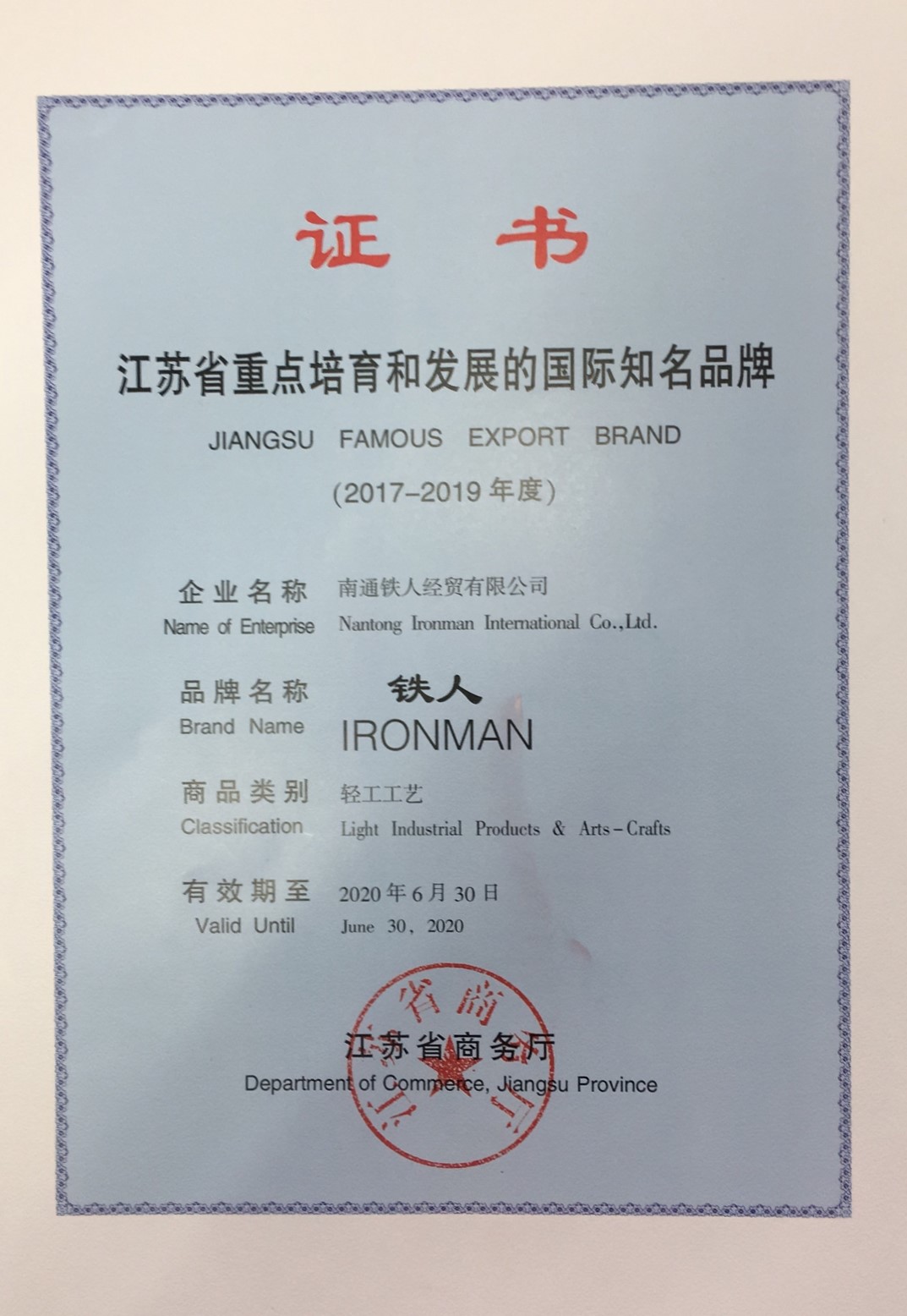 | 2018 | 江蘇省重點(diǎn)培育和發(fā)展的國(guó)際知名品牌 | 江蘇省商務(wù)廳 |